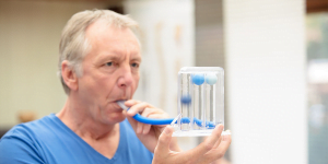 Mensen met COPD hoesten veel om slijm kwijt te raken. Bij sommigen zijn de longen echter minder stevig en werkt hoesten juist averechts. De fysiotherapeut leert u een methode om zo effectief mogelijk te hoesten (huffen). Hierdoor voorkomt u luchtweginfecties en/of komt u er sneller vanaf . In veel gevallen is de ademhaling gedysreguleerd en leert u van uw fysiotherapeut een betere ademhalingstechniek die u in rust en tijdens inspanning kunt toepassen. Dit helpt om zo optimaal mogelijk te kunnen functioneren.